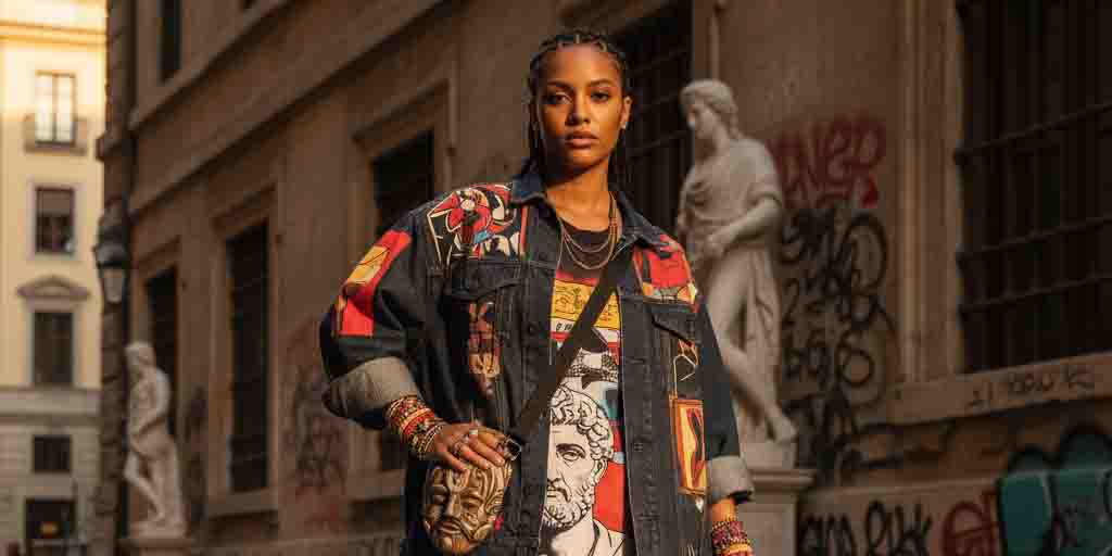 - Street culture – graffiti-inspired fonts, oversized fits, and rugged detailing.