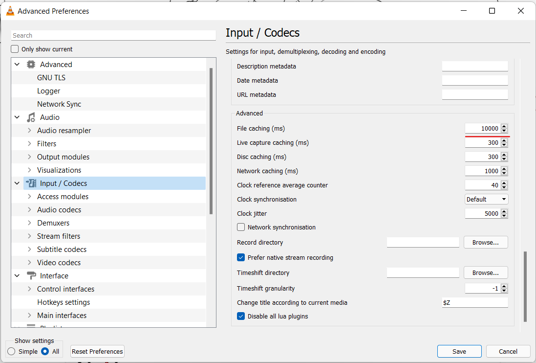 - Go to Input / Codecs in the left panel.