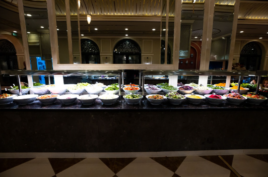 Bright lighting exposes movement and queue length. Loud rooms amplify stress. Even excellent food struggles under these conditions. Successful buffets soften the environment. Warm lighting reduces visual clutter. Controlled acoustics absorb noise. Diners relax subconsciously. Conversations continue at normal volume. The room feels full without feeling hectic.